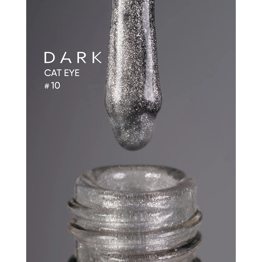 DARK esmalte en gel “Cat Eye” destaca por su brillo único y su profundo efecto 3D. El juego de finas partículas brillantes crea un efecto camaleón, lo que lo hace especialmente popular en la temporada otoño–invierno y, al mismo tiempo, una elección moderna para looks primaverales y veraniegos.