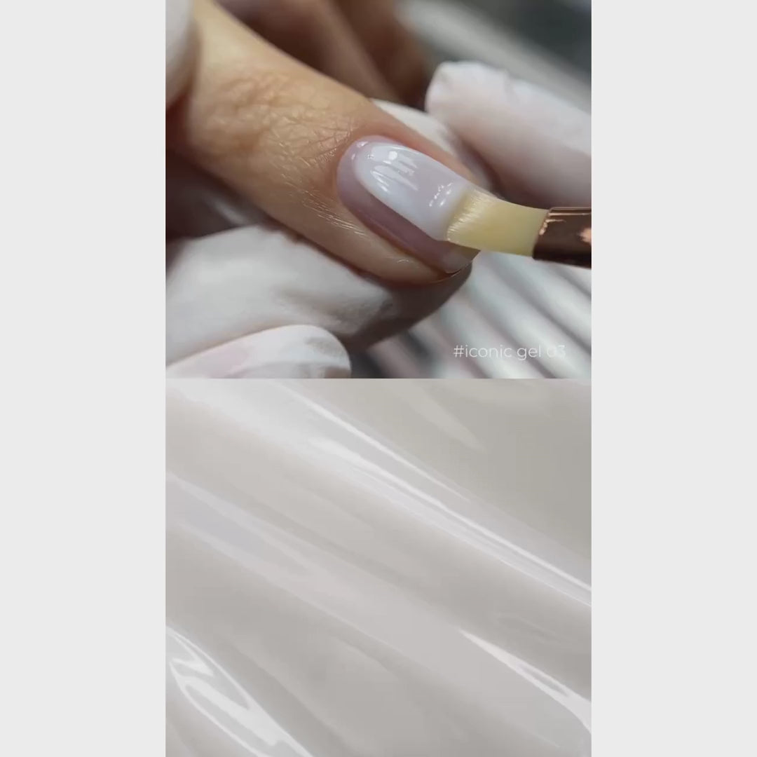 - Apply a layer of DARK ICONIC GEL, distributing it evenly over the nail surface.