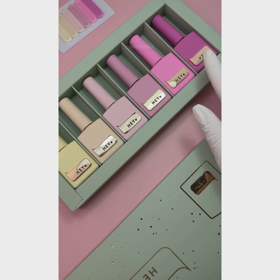 HEYLOVE Gel Polishes are premium gel polishes with dense pigmentation and a medium consistency. They are easy to apply, do not run on the nail plate, and provide a glamorous manicure with just one or two coats.