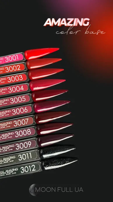 Color Base Moon Full Amazing — an incredible collection of colored bases in a new, unique bottle, perfect for quick strengthening and smoothing of the nail plate. Thanks to modern technology, this base allows full nail coverage in one coat, delivering a dense and vibrant color.